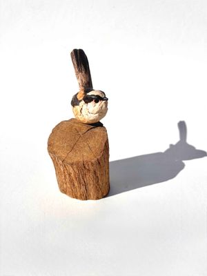 Life size long tailed tit sculpture