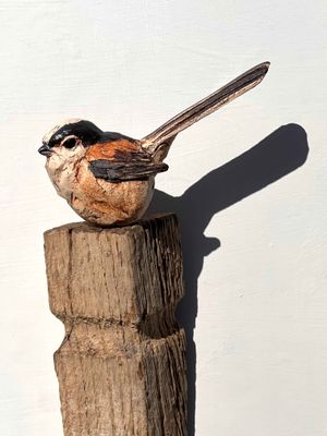 Life size long tailed tit sculpture